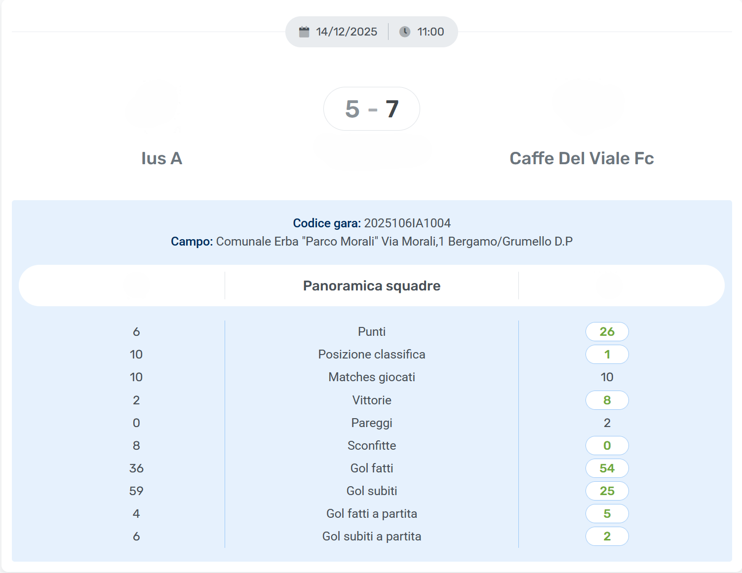 Al “Parco Morali” va in scena una gara pirotecnica: dodici gol totali e tanto spettacolo in una sfida dove la IUS A gioca senza paura contro la prima della classe, il Caffè del Viale FC, ancora imbattuto.